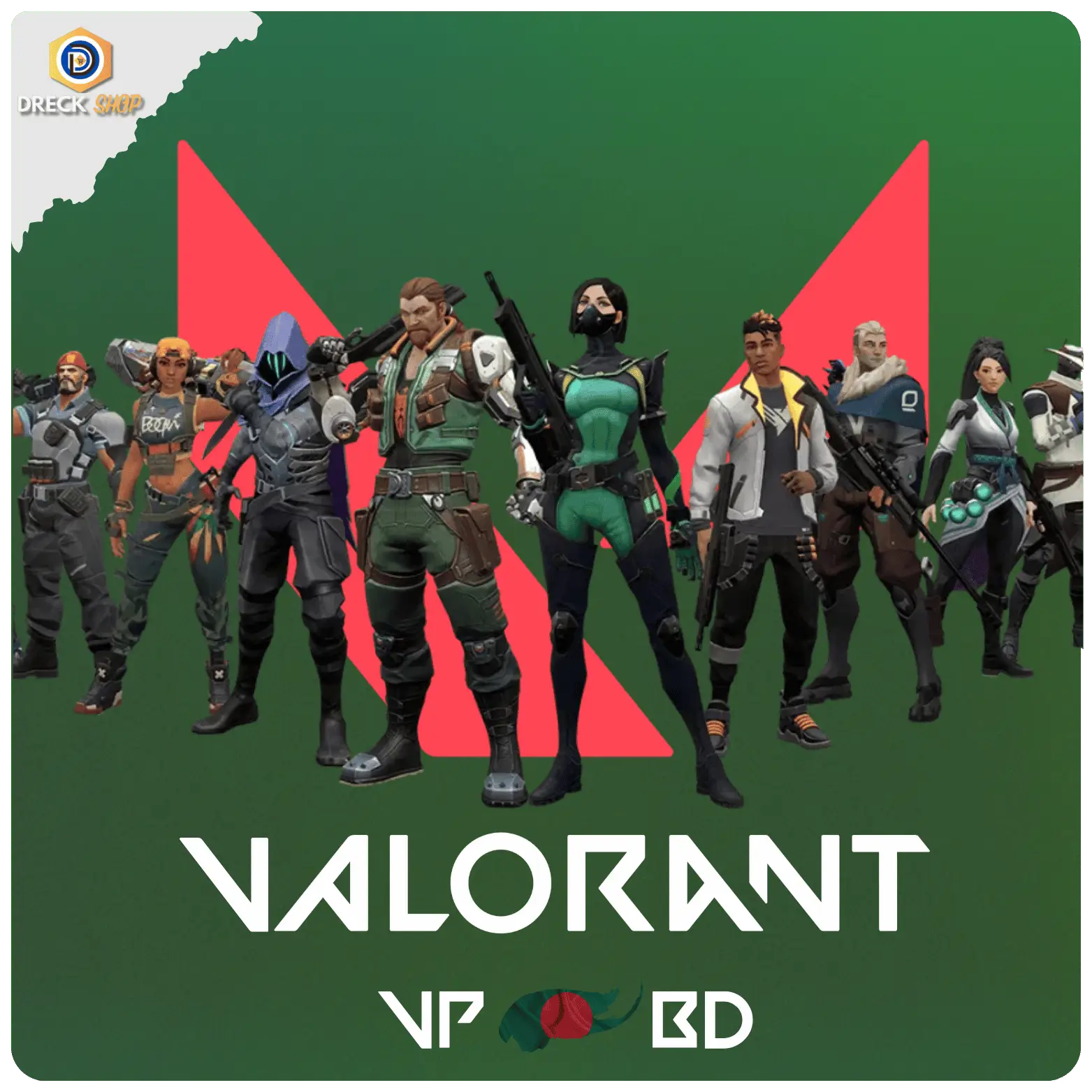 Buy Valorant Points (BD) quickly and securely through Dreck Shop. Instantly top up your Riot ID to unlock exclusive skins, weapon bundles, battle passes, and more, all while playing on the Bangladesh (BD) server.